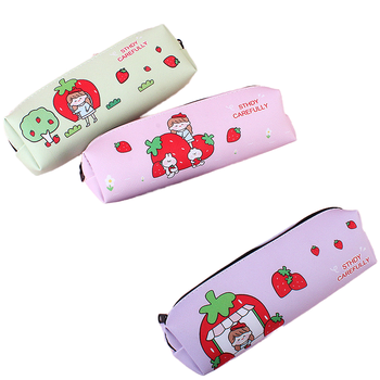 Yb गुलाबी स्ट्रॉबेरी पेंसिल केस कावायी स्टेशनरी बैग बड़ी क्षमता वाले ट्रस स्कूल लड़के लड़कियों के लिए पेंसिल के मामले